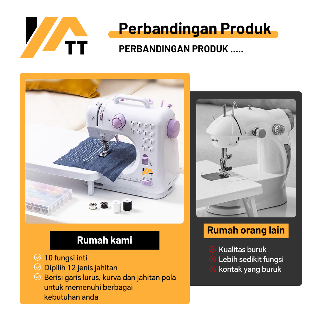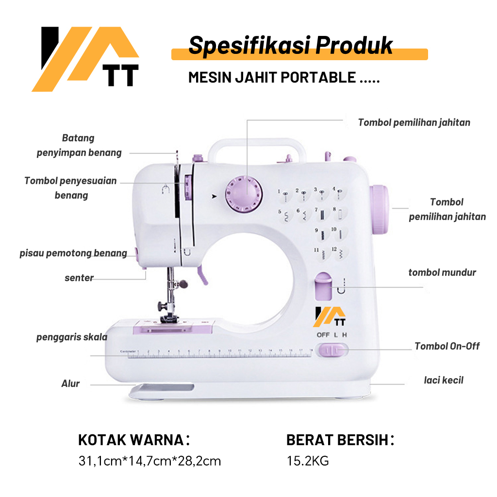 YATT Mesin Jahit Mini rtabel 505A 12 Stitch la / mesin Jahit Listrik Pakaian / Mesin Jahit LED