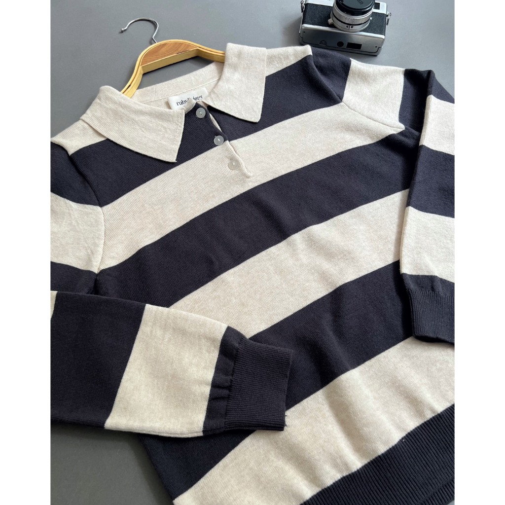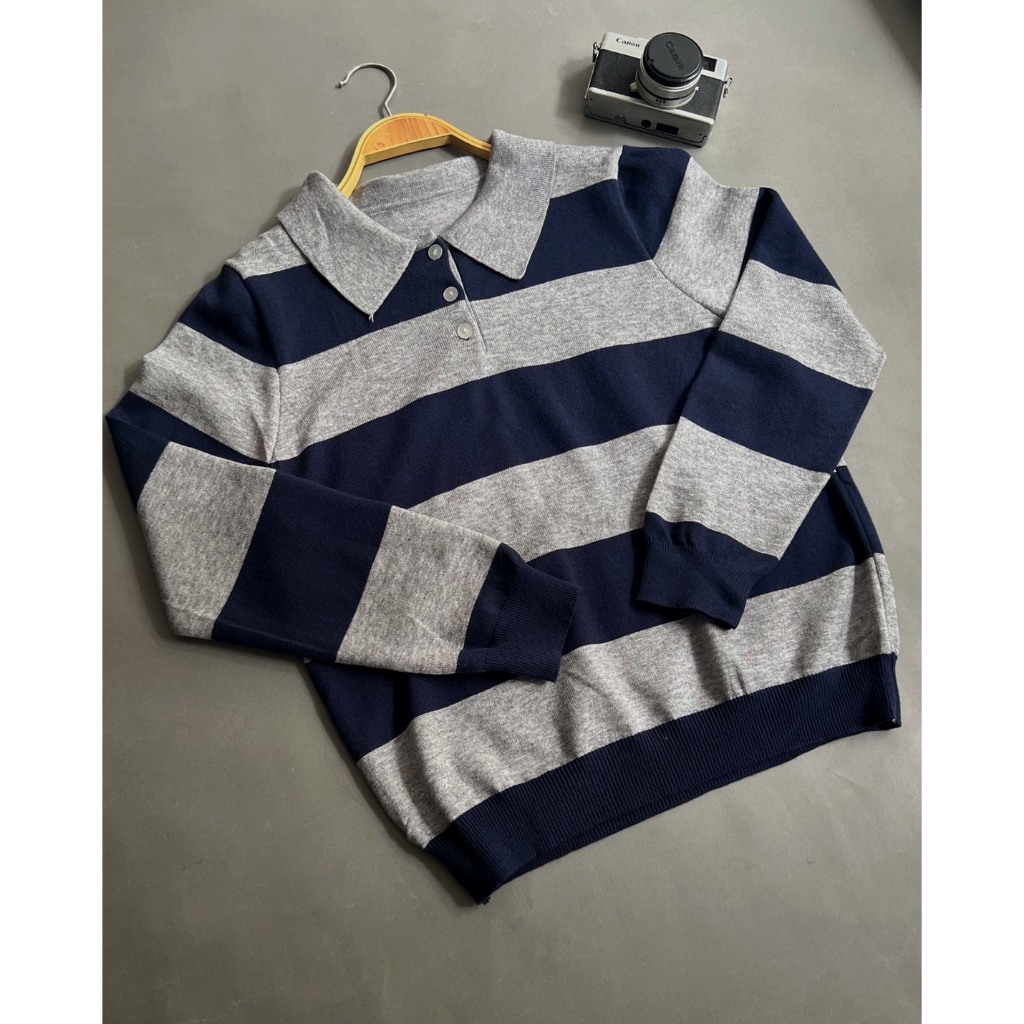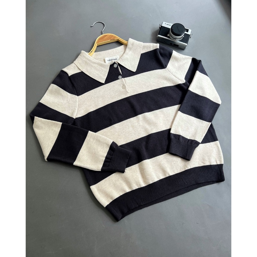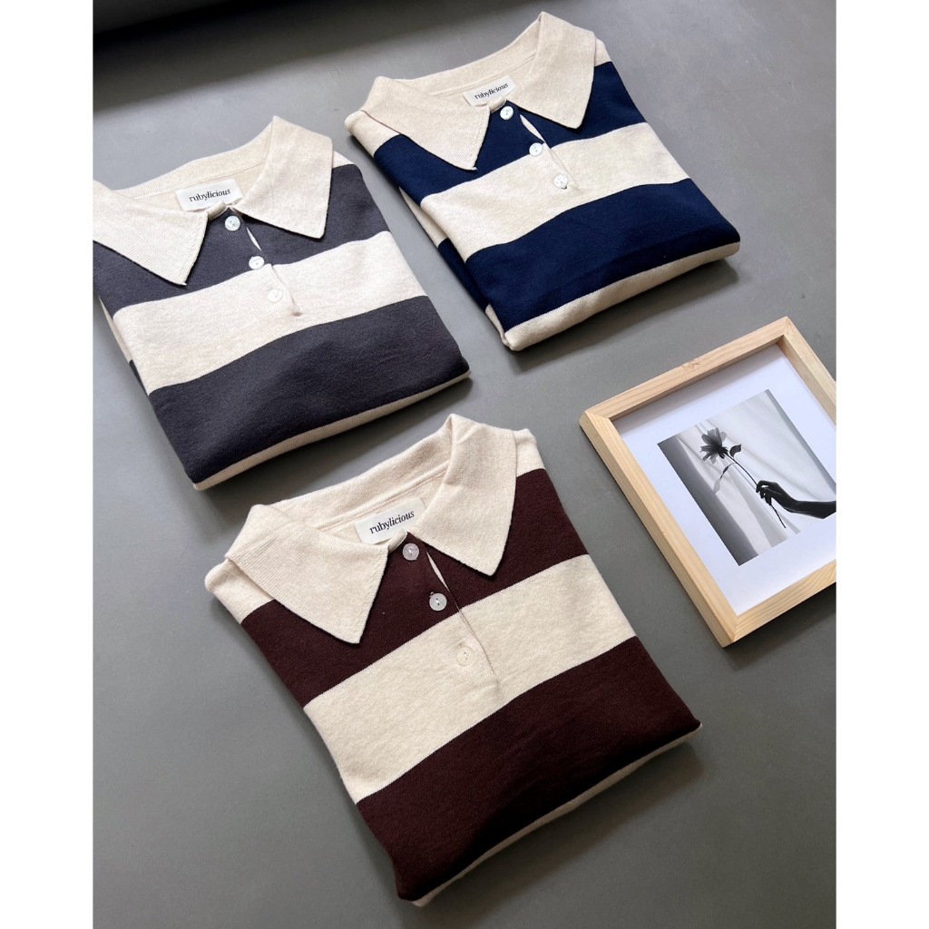 Myrubylicious KARIME STRIPE SHIRT KODE 28J KEMEJA KNIT BERGARIS KEMEJA WANITA SANTAI