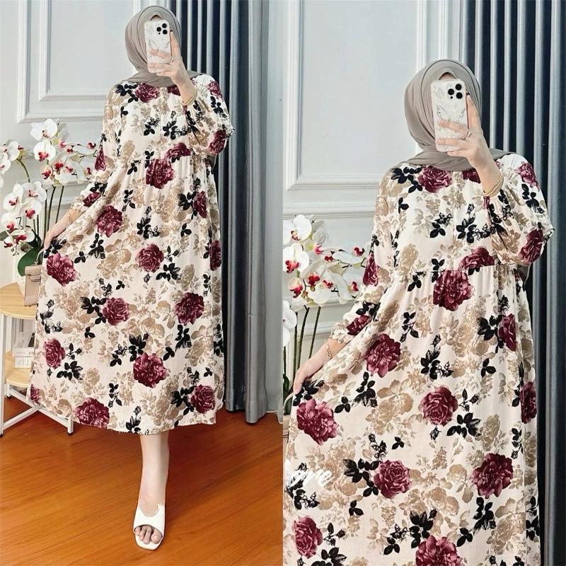 Kalana Midi Dress LD 110 Dress Busui friendly mat rayon MOTIF BUNGA