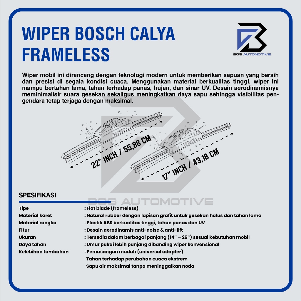 Wiper Blade BOSCH Clear Frameless Karet Kipas Kaca Depan Mobil TOYOTA CALYA - DAIHATSU SIGRA Frame Hook 22" - 17" Inch O