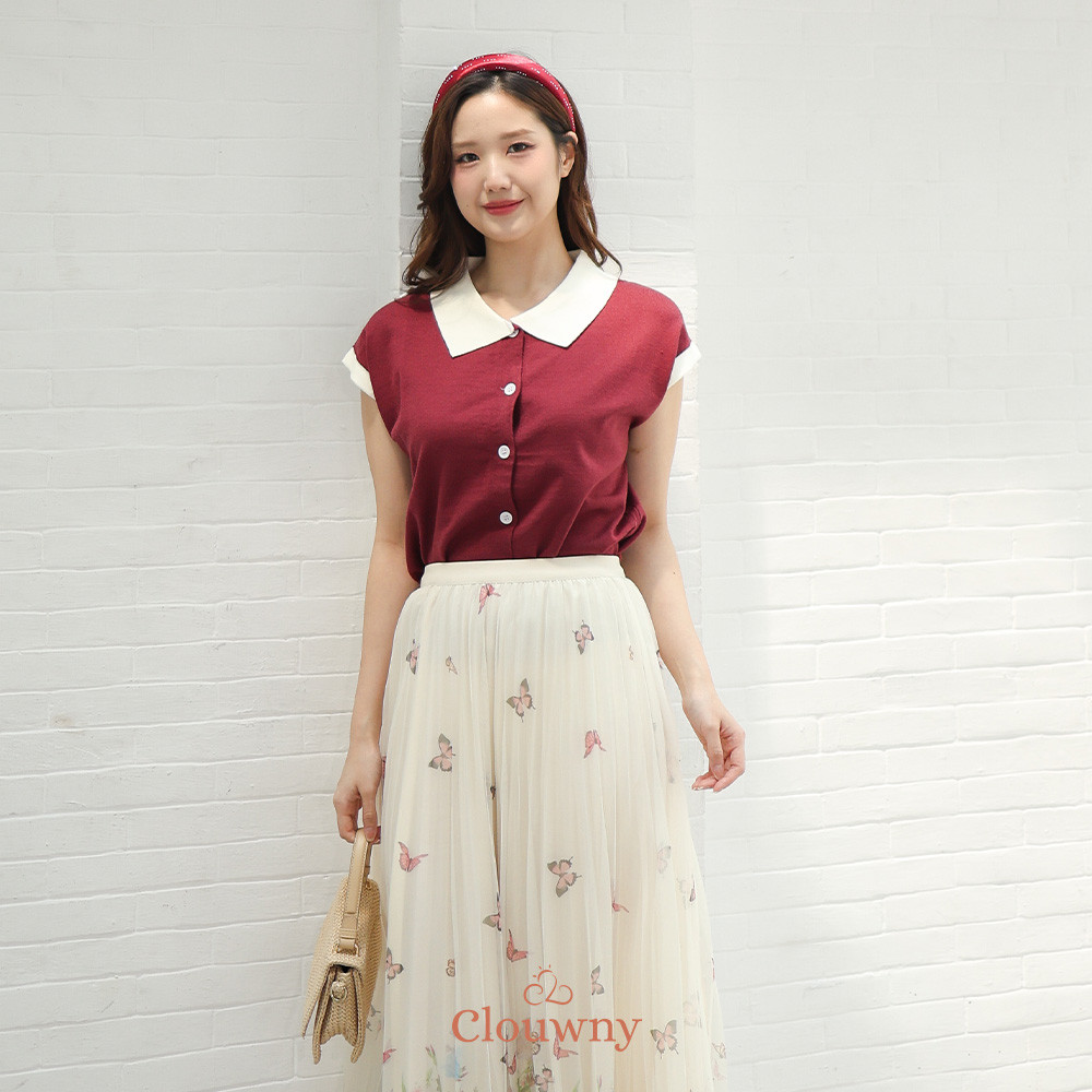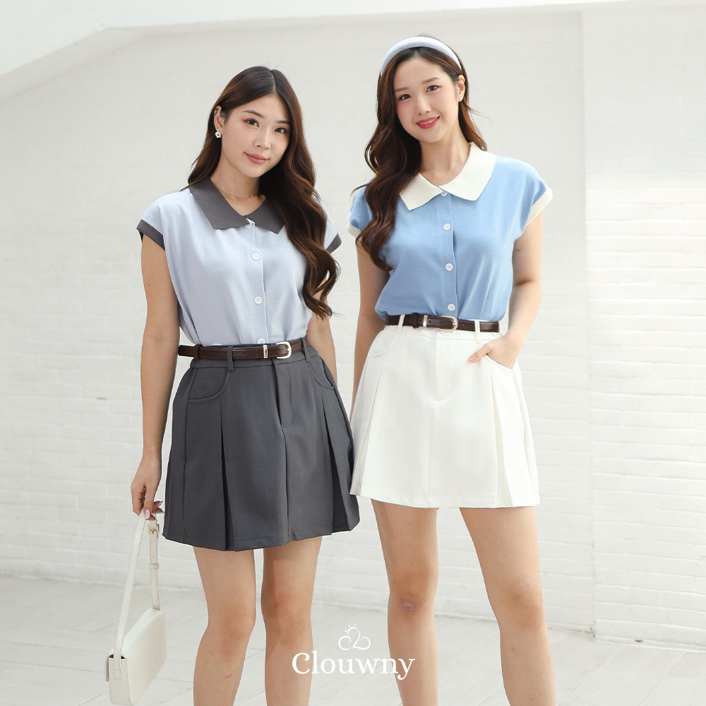 Clouwny Dava Collar Knit Top Atasan Wanita Kerah Premium Knitt Fit to XXL