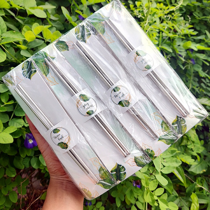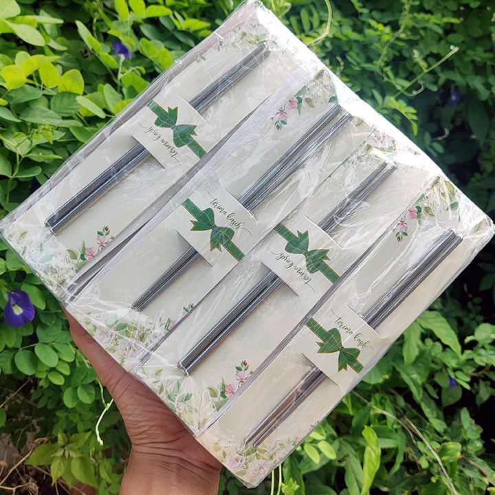 50 PASANG Souvenir Sumpit Stainless Alas Shabby Kkuningan mengkilap Plastik