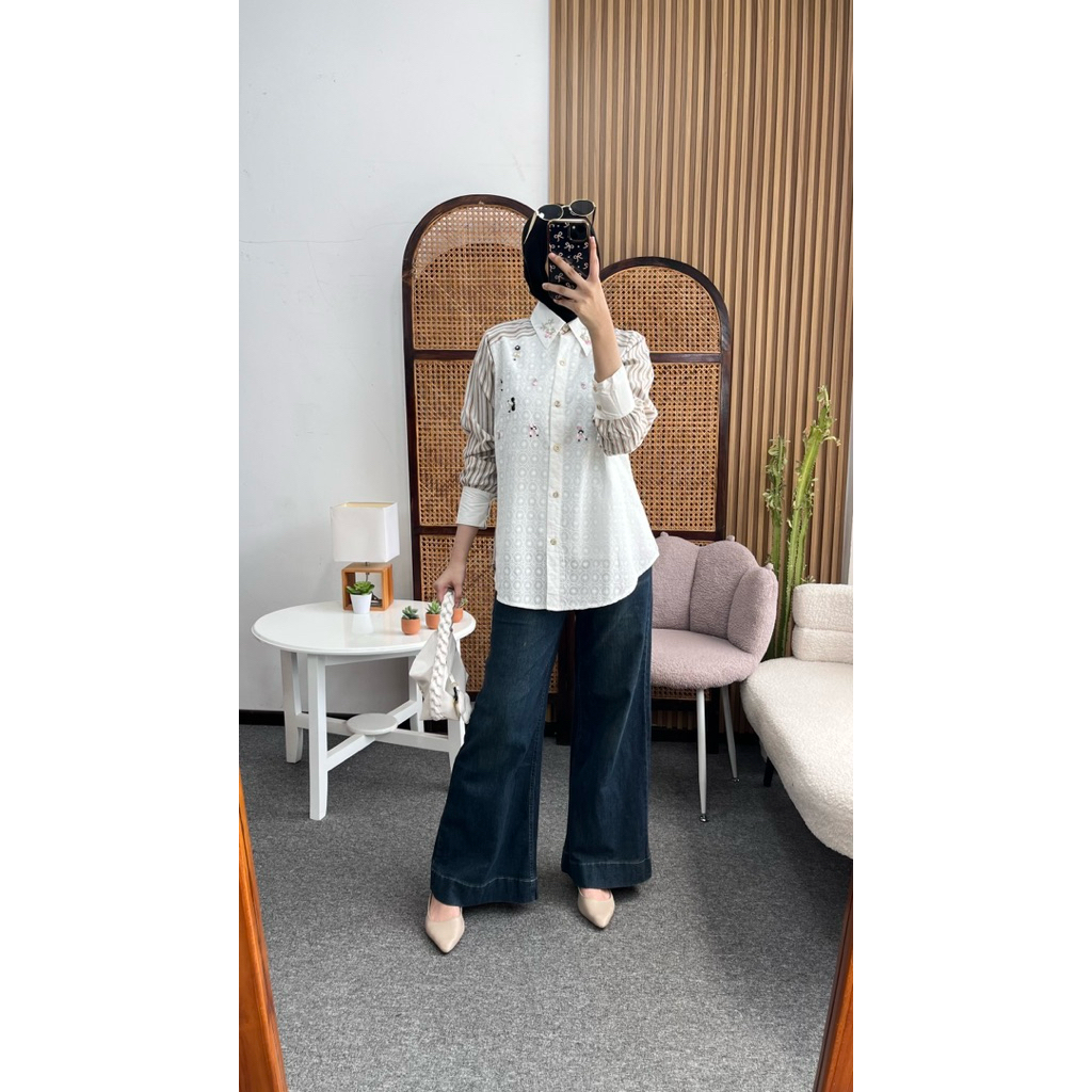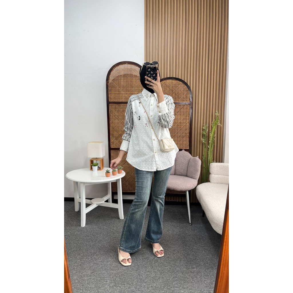 Little butik ANAYA BLOUSE Atasan kemeja wanita bahan cotton salur mix katbol