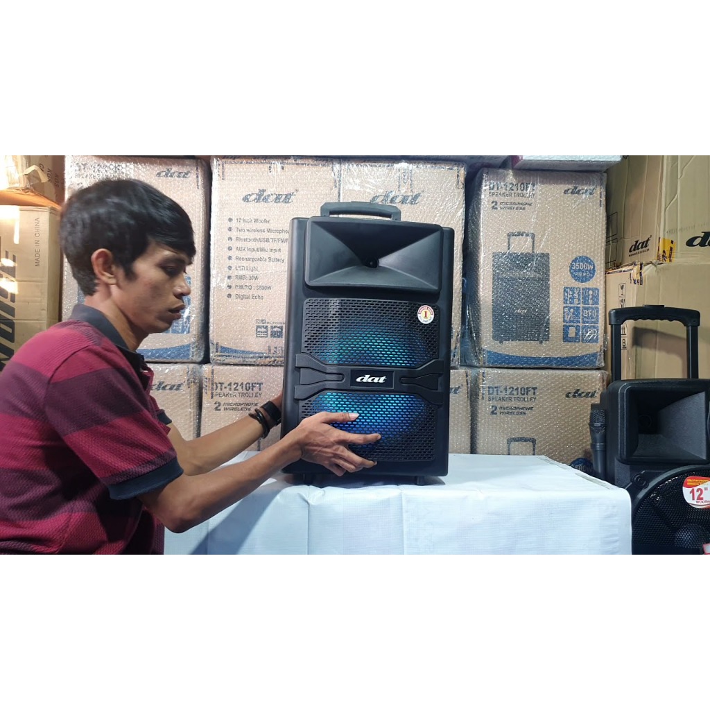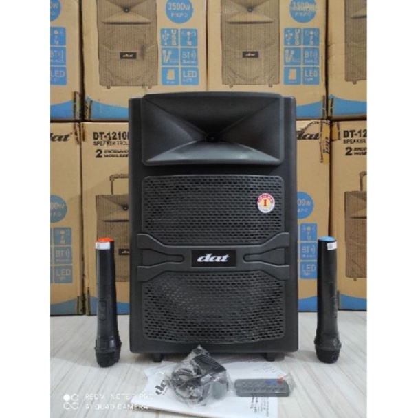 speaker trolley 12 inch / speaker portable DAT DT1210FT / DT 1210 FT free mic wireless 2 pcs MURAH MERIAH