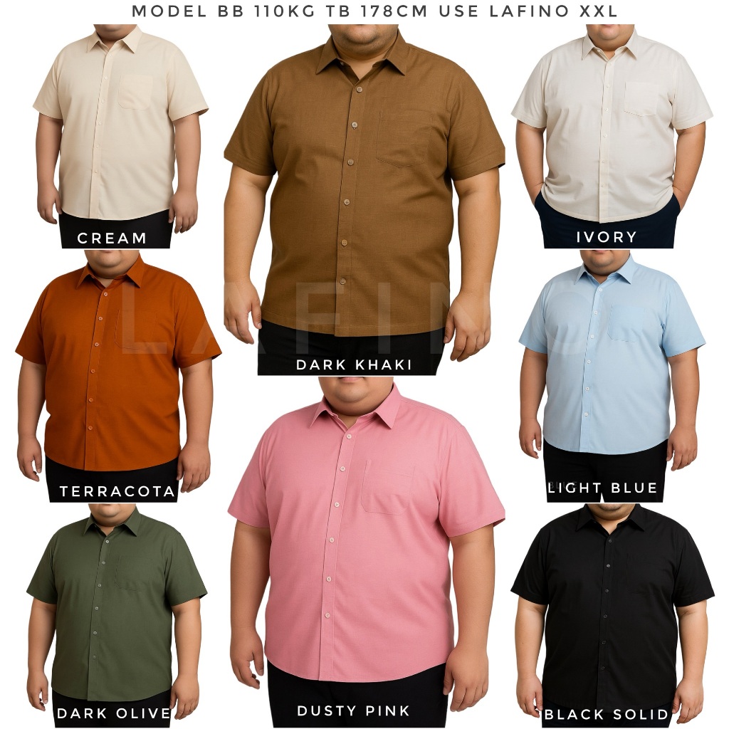 LAFINO M L XL 2XL 3XL 4XL (XXL XXXL XXXXL) HEAVYWEIGHT RAMI KEMEJA POLOS PENDEK PRIA JUMBO BIG SIZE