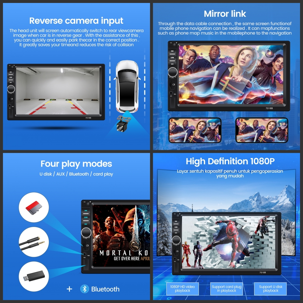 GEARELEC Universal 7 Inch Double Din Head Unit MP5 Player Mirror Touch Screen Bluetooth