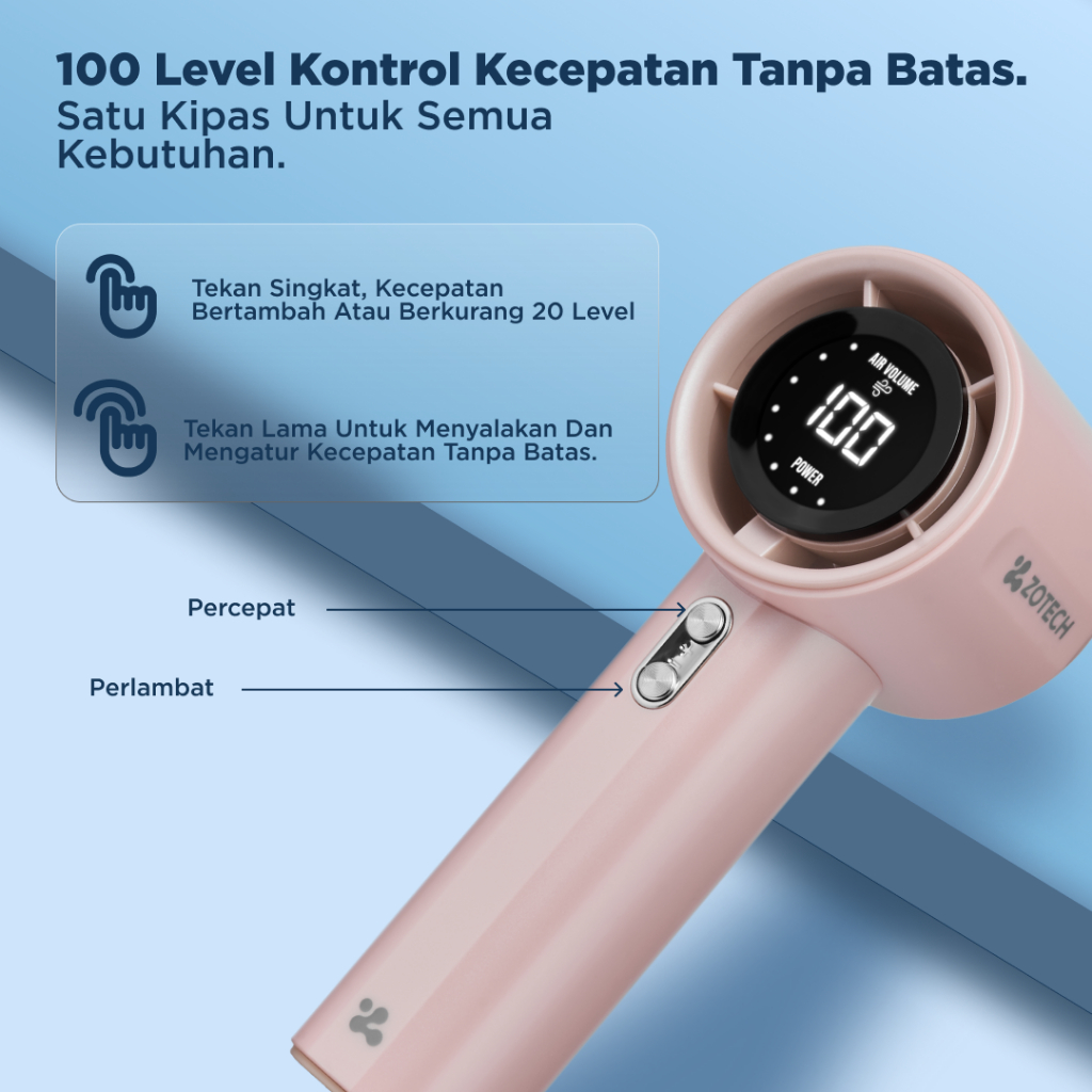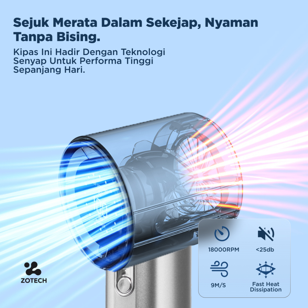 ZOTECH ZT-01 Kipas Angin Mini Portable Turbo 100 Gear Wind Speed 18000RPM Kipas Tangan Genggam