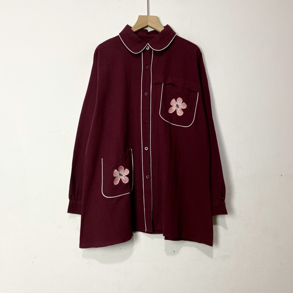 Adelina Blouse LD 120 Kemeja Bordir Premium Atasan Wanita Oversize