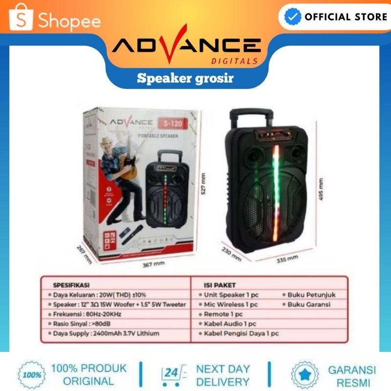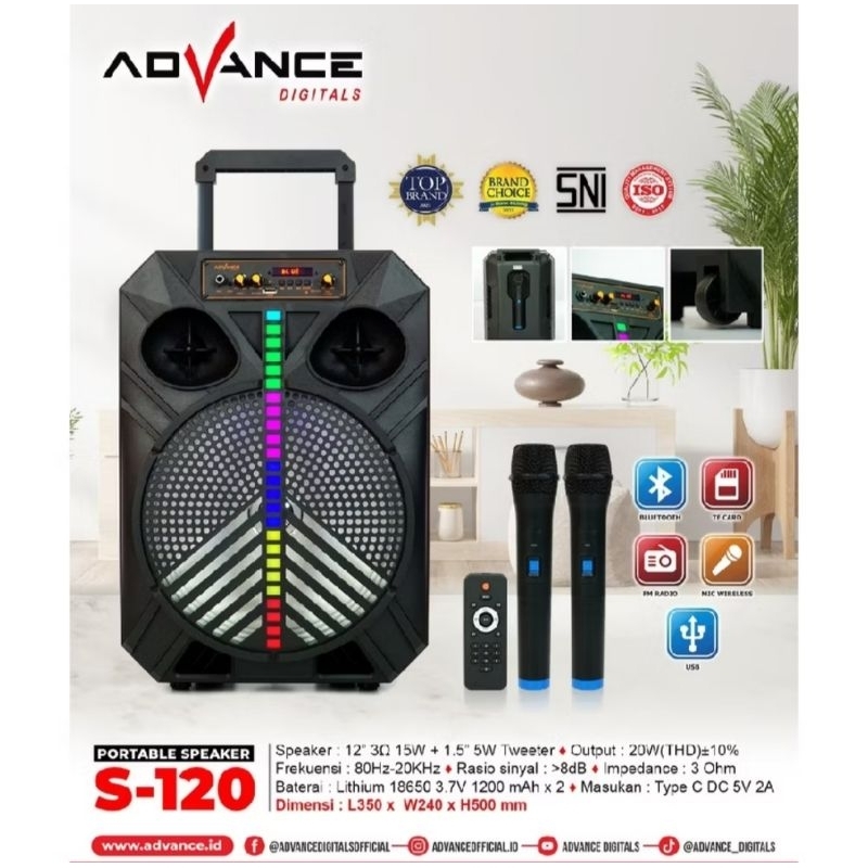 Advance S120 Speaker Bluetooth Karaoke 12” Free 2 Mic Wireless Portable
