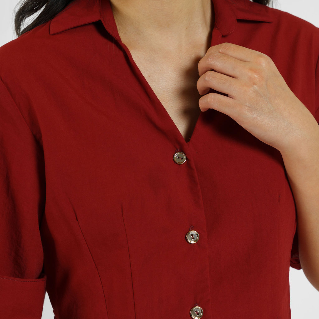 Momelca Paula Top Kemeja Maroon Lengan Pendek