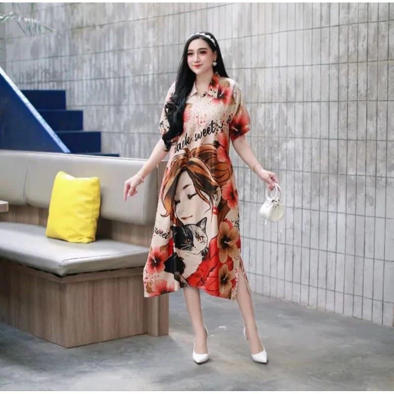 Daster Rayon Jumbo Lengan Pendek Busui Bumil Kancing Depan Lengan Pendek Motif Batik Kekinian Big Sale