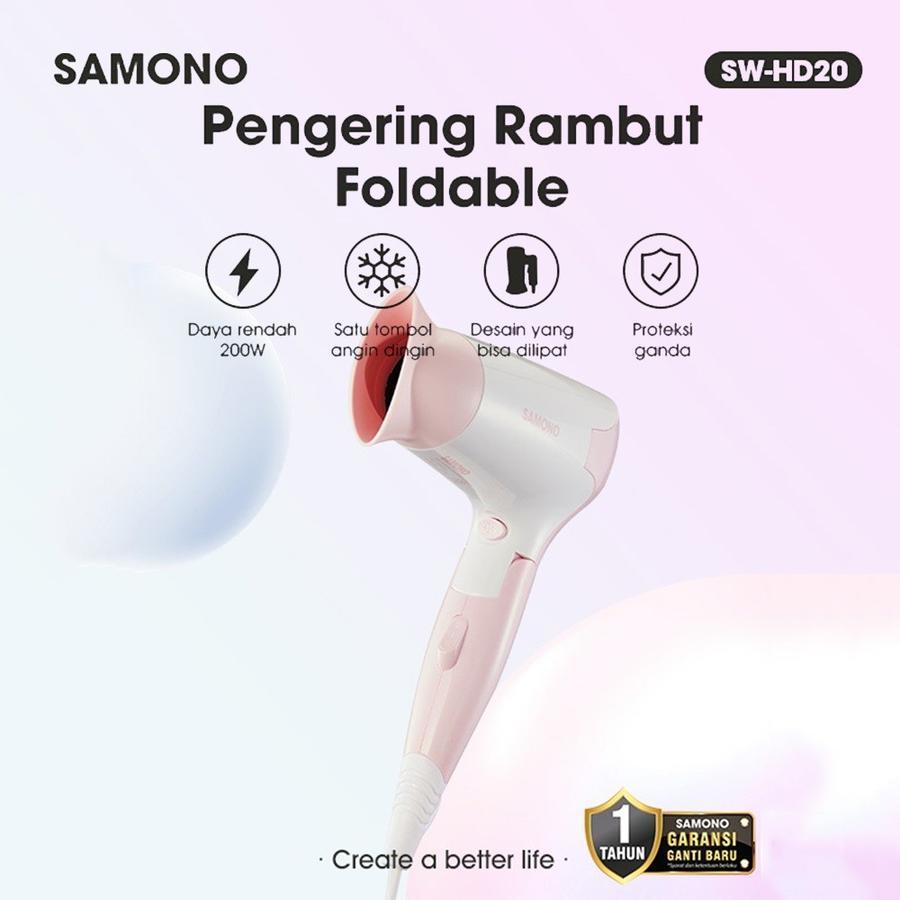 SAMONO Hair Dryer SW-HD20 200W Pink Pengering Rambut 2in1 Angin Dingin Panas Low Watt Bisa Lipat Hairdryer Kering