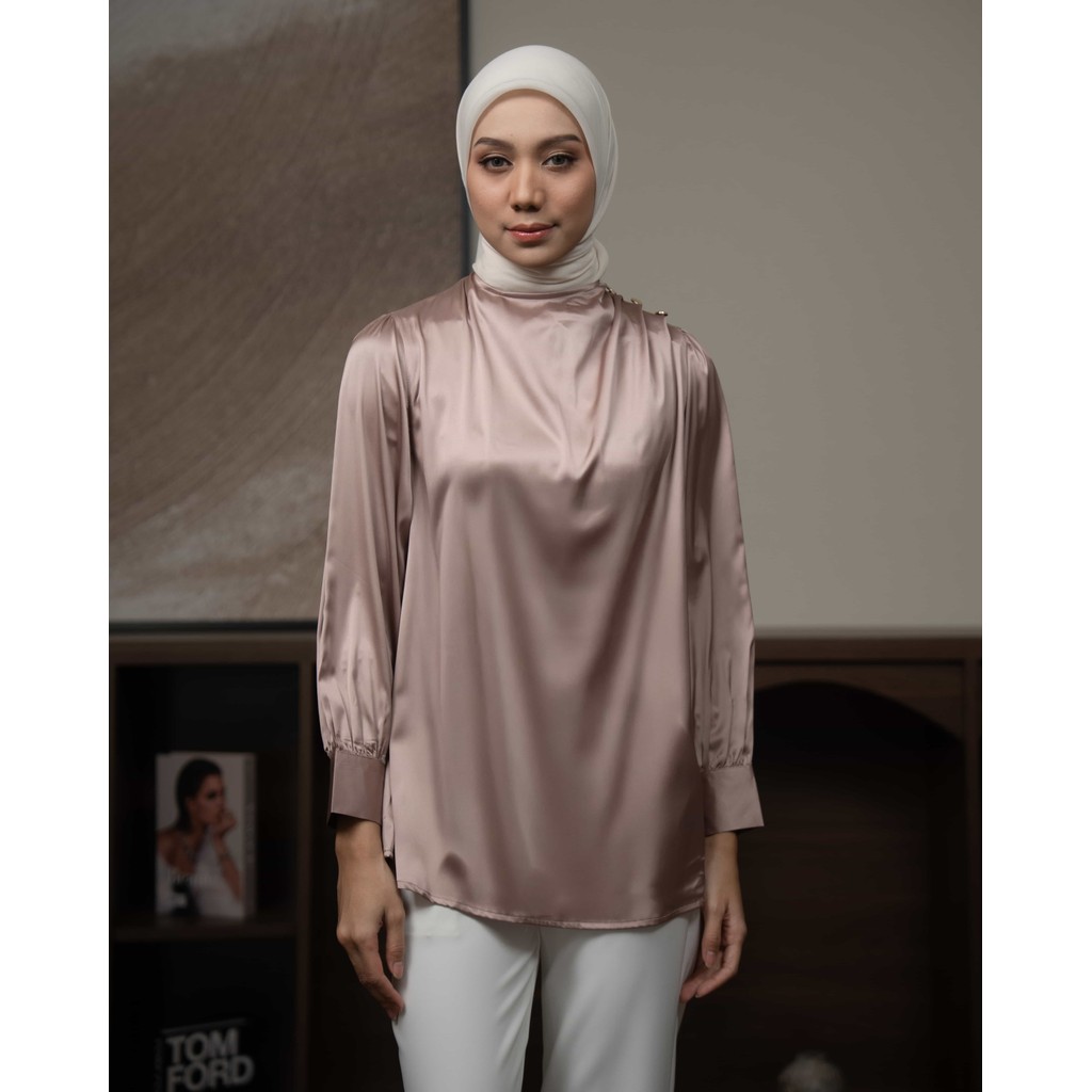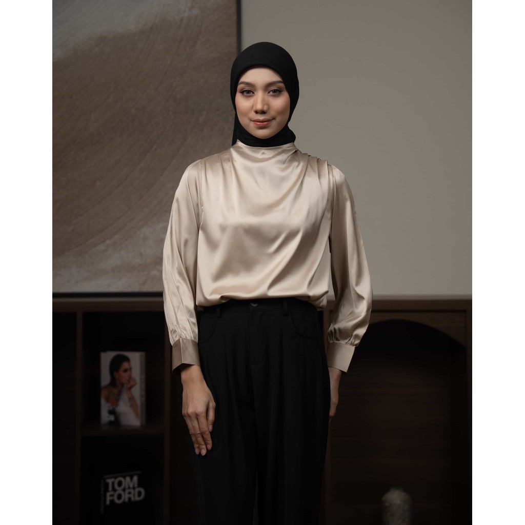 Mayoutfit Chizya Blouse Blus Kondangan Wanita Baju Lebaran Atasan Silk Premium Drapery Blouse