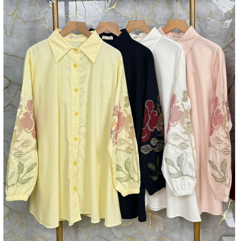 AYRASIGNATURE KEMEJA KATUN LENGAN BORDIR ATASAN WANITA PREMIUM