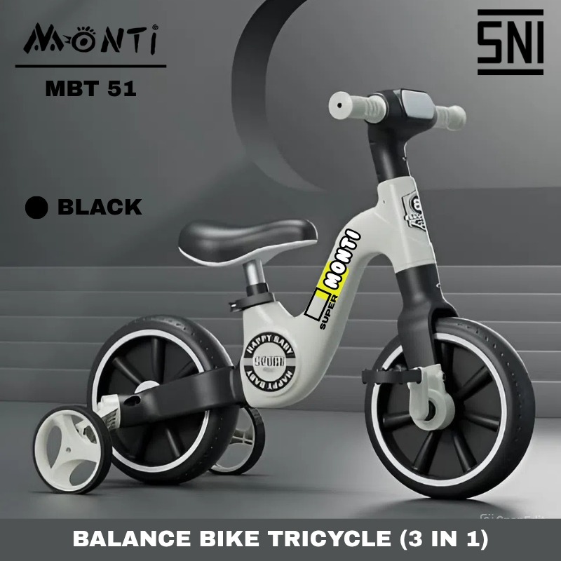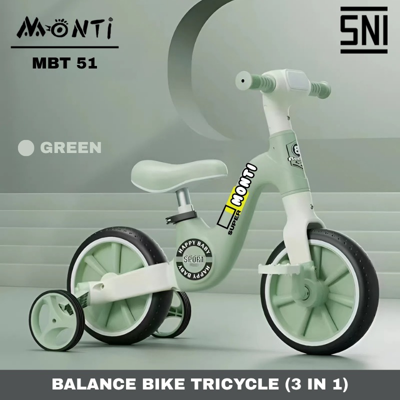 Monti MBT-51 3in1 Sepeda Anak Roda 2 Tricycle Balance Bike dengan Musik SNI Green Black Brown Multifungsi & Fitur Musik