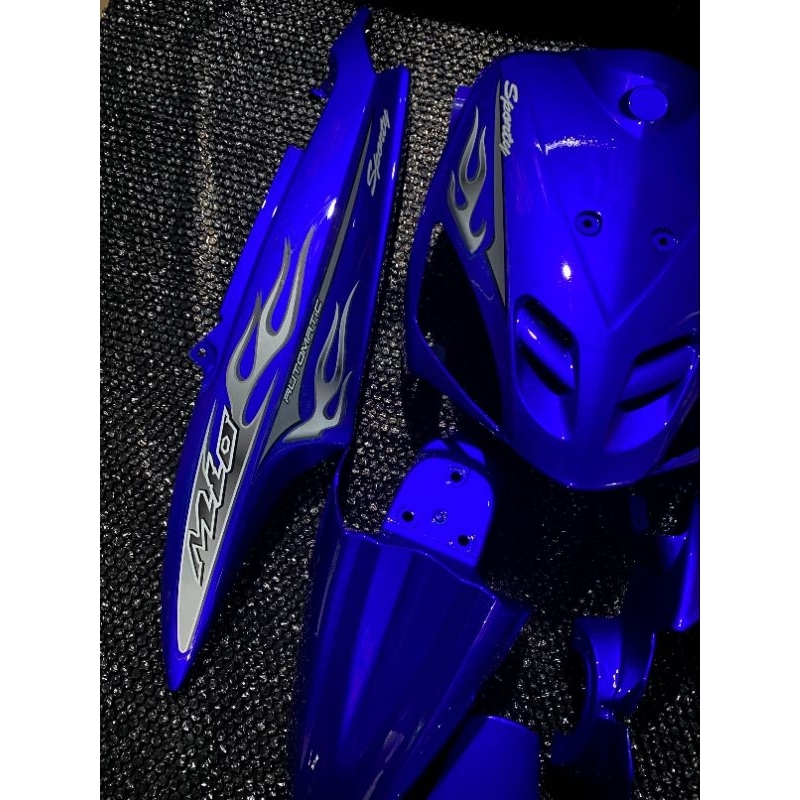 Cover full body halus yamaha mio sporty warna biru candy plus striping api transparan