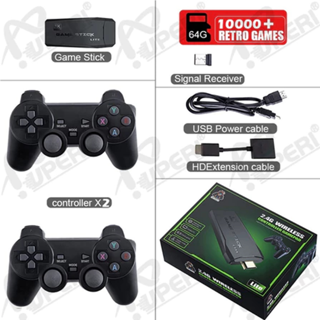 Game stick 4K/Gaming/Permainan Konsol Video 64G Bawaan 20300 Game Konsol Game Genggam Retro Stik Game Pengendali Nirkabel untuk Hadiah Natal Anak PS1/GBA