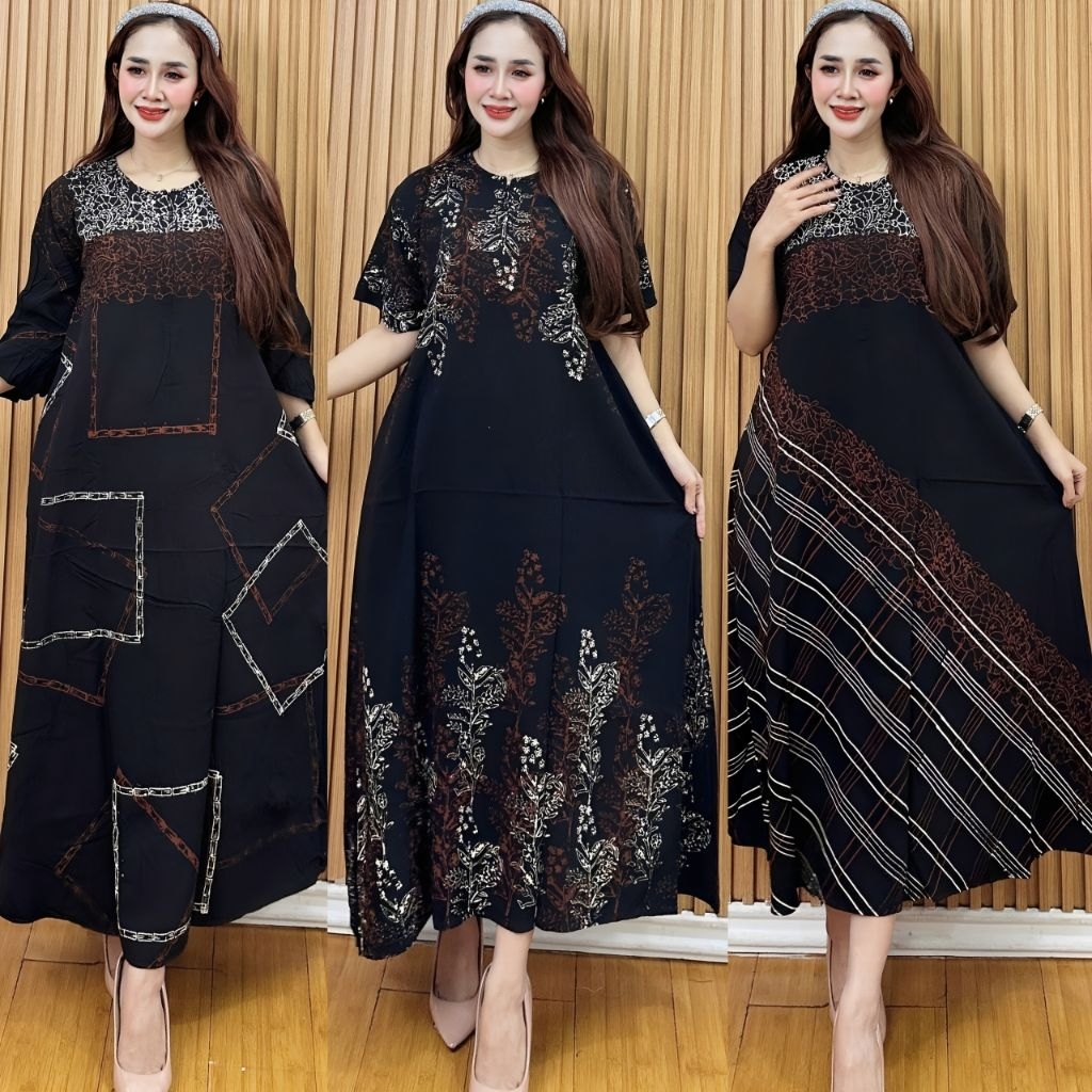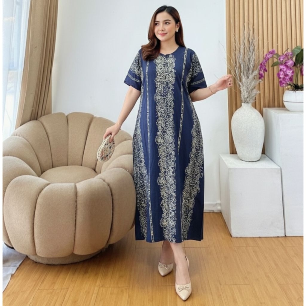 Daster Cap Asli Pekalongan Rayon Twill malaman Lengan Pendek Resleting Depan