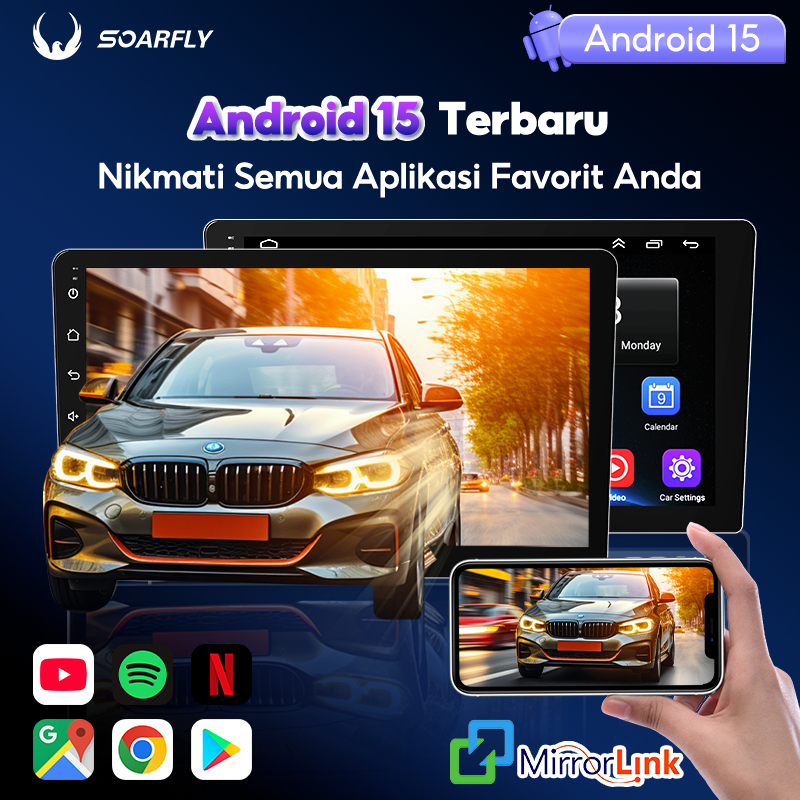 SOARFLY Head Unit Android 7/9/10 Inci 6+64G Carplay Android 15 Dukungan WiFi/GPS/Youtube/Pendinginan kipas ganda