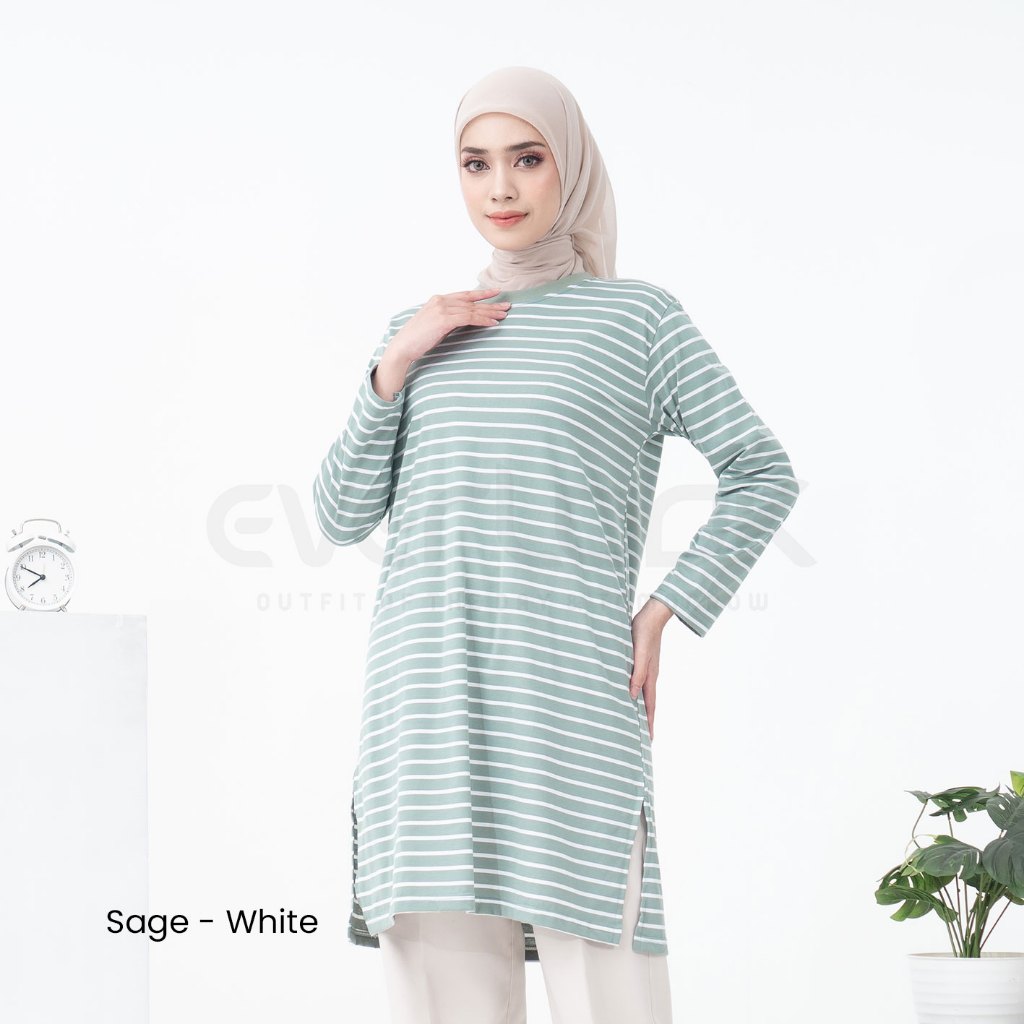 Everlook Tunik Stripe Kaos Tunic Basic Salur Premium Cotton Mix 30s T2