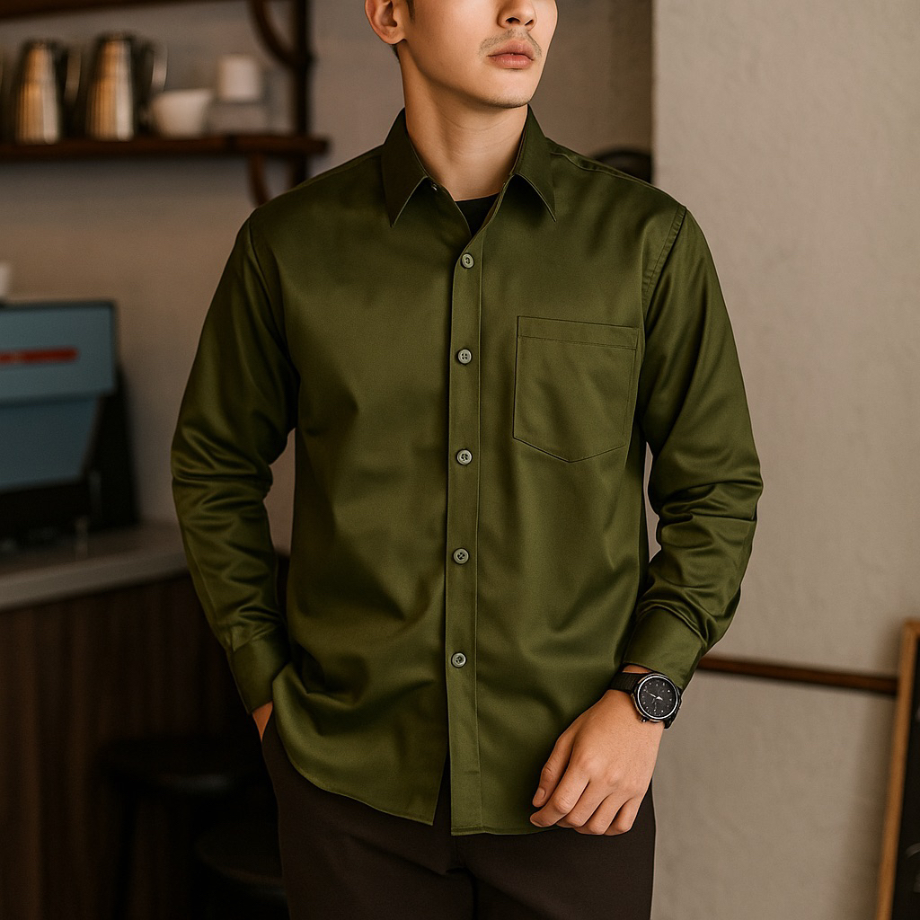Kemeja Polos Lengan Panjang Pria Katun Toyobo - Casual Formal Look Style Rapi Cocok Buat Kerja