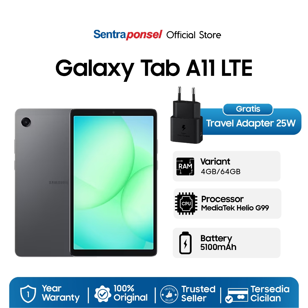 Galaxy Tab A11 LTE 4GB/64GB Gratis Travel Adapter 25W - Garansi Resmi