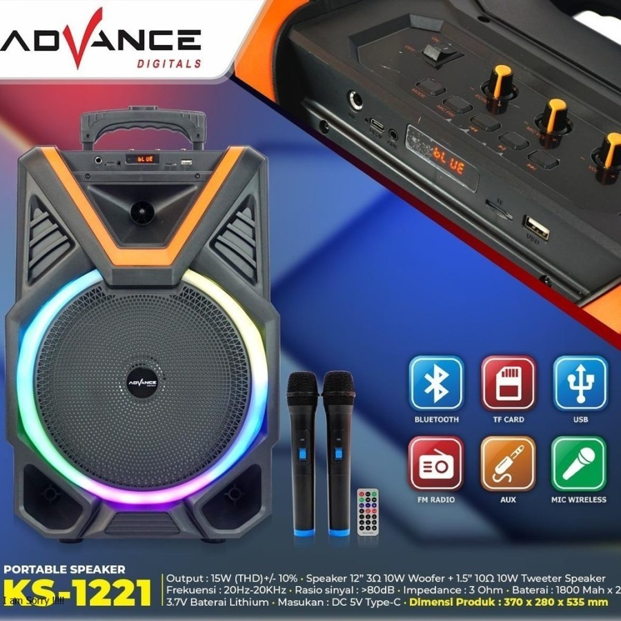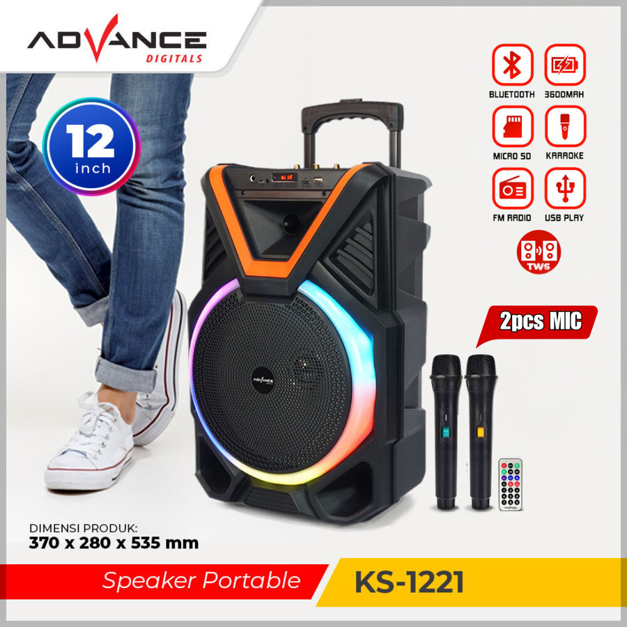 Speaker Meeting Portable Speaker ADVANCE KS 1221 Bluetooth 12 Inch 2 Mic Wireless