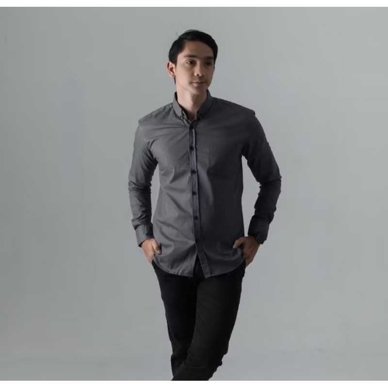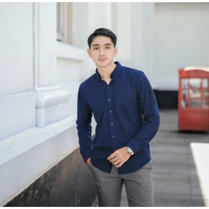 kemeja panjang pria cowok gatlemen cowok biru navy dongker polos formal kantor