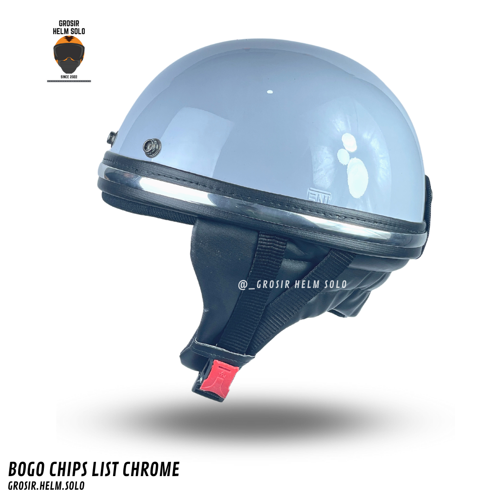 HELM BOGO CHIPS RETRO 4ppi LIST CROM POLOS TANPA KACA TERBARU SNI