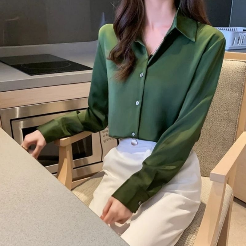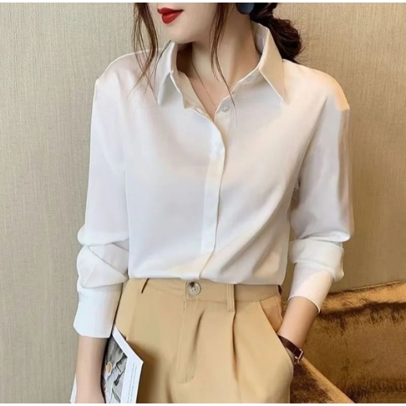 Baju Kemeja Putih Wanita Kemeja Polos Panjang Wanita Kerja Kasual Formal