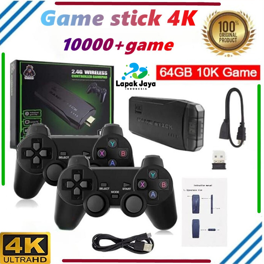 Game Stick 4K ps 2 full game + stick 2 Console Wireless Gamepad 64GB HDMI TV Retro Video Game ps 3 full game + stick 2 Pengendali Nirkabel untuk Hadiah Natal Anak