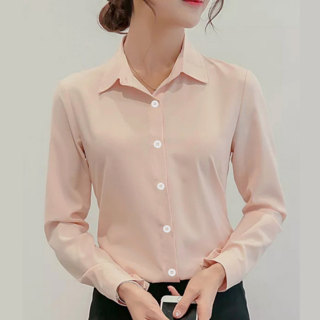Kemeja Polos Wanita Atasan Kasual Polos Putih Hitam Formal Kemeja Kerja