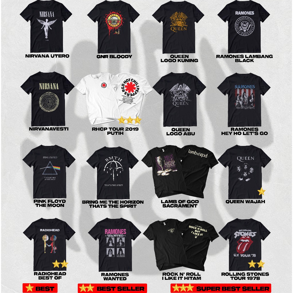 PAKET 6 Kaos Musik, Kaos Band Rock, Kaos Band Metal, baju band metal, Baju Band, Baju Metal, --SABLON PLASTISOL-- // kaos rock // kaos metal, kaos musik pria, kaos band punk