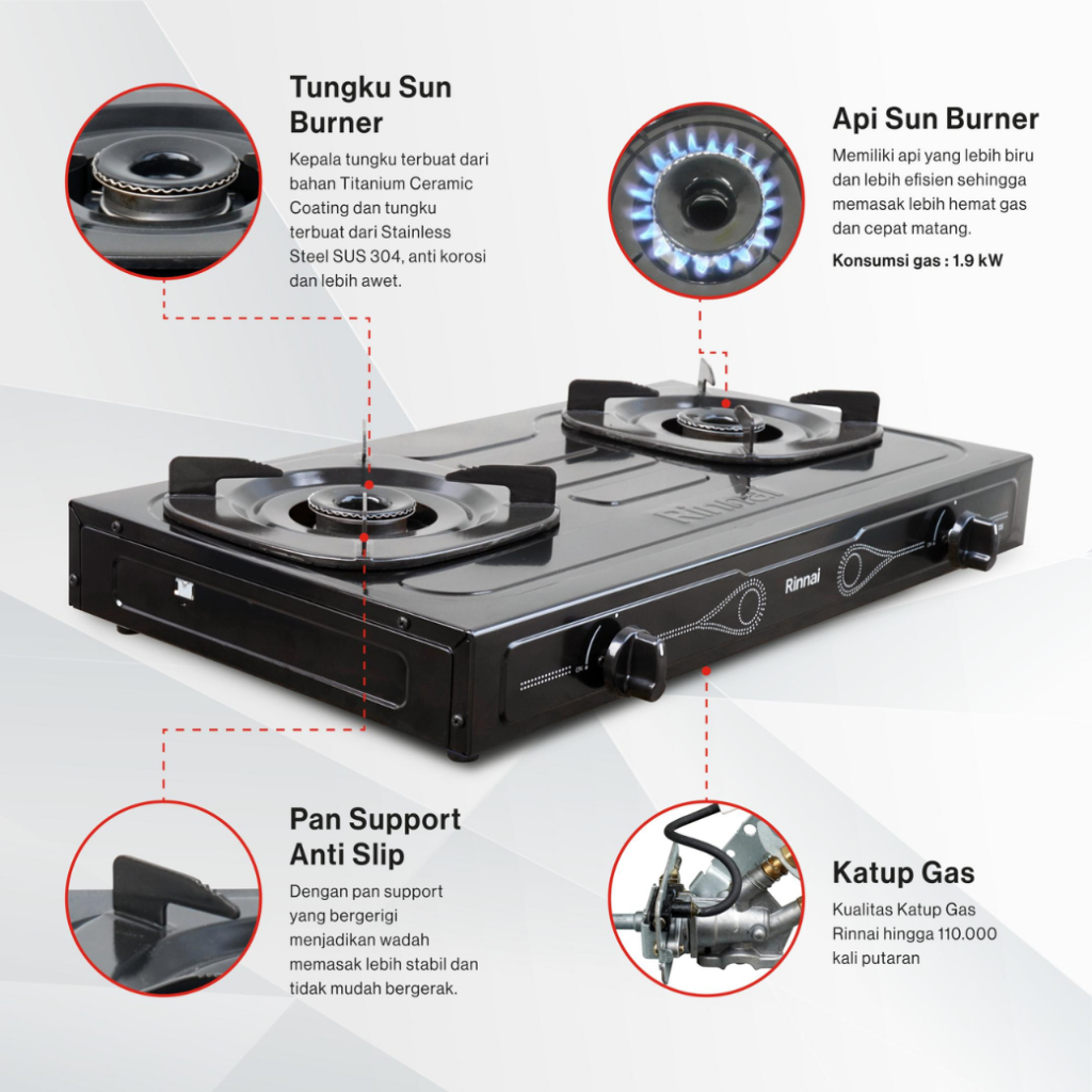 Rinnai Paket Kompor Selang Dan Regulator Ri 202s 2 Tungku Garansi Resmi