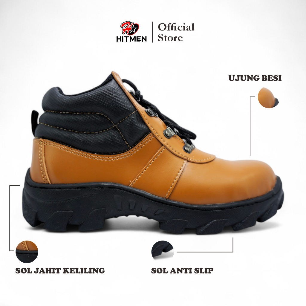 HITMEN HS-53 Sepatu Safety Semi Boots dengan Ujung Besi, Ukuran 39-45 - Cocok untuk Proyek dan Hiking - Outdoor, Pria
