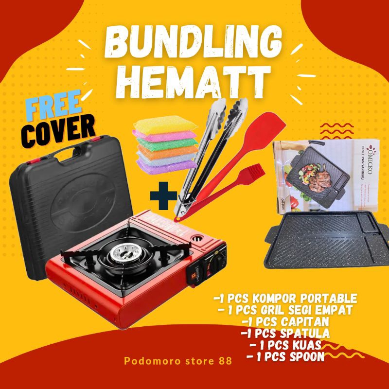 PAKET KOMPOR BUNDLING HEMAT GRILL SEGIEMPAT/ SMOKELESS KOMPOR PORTABLE