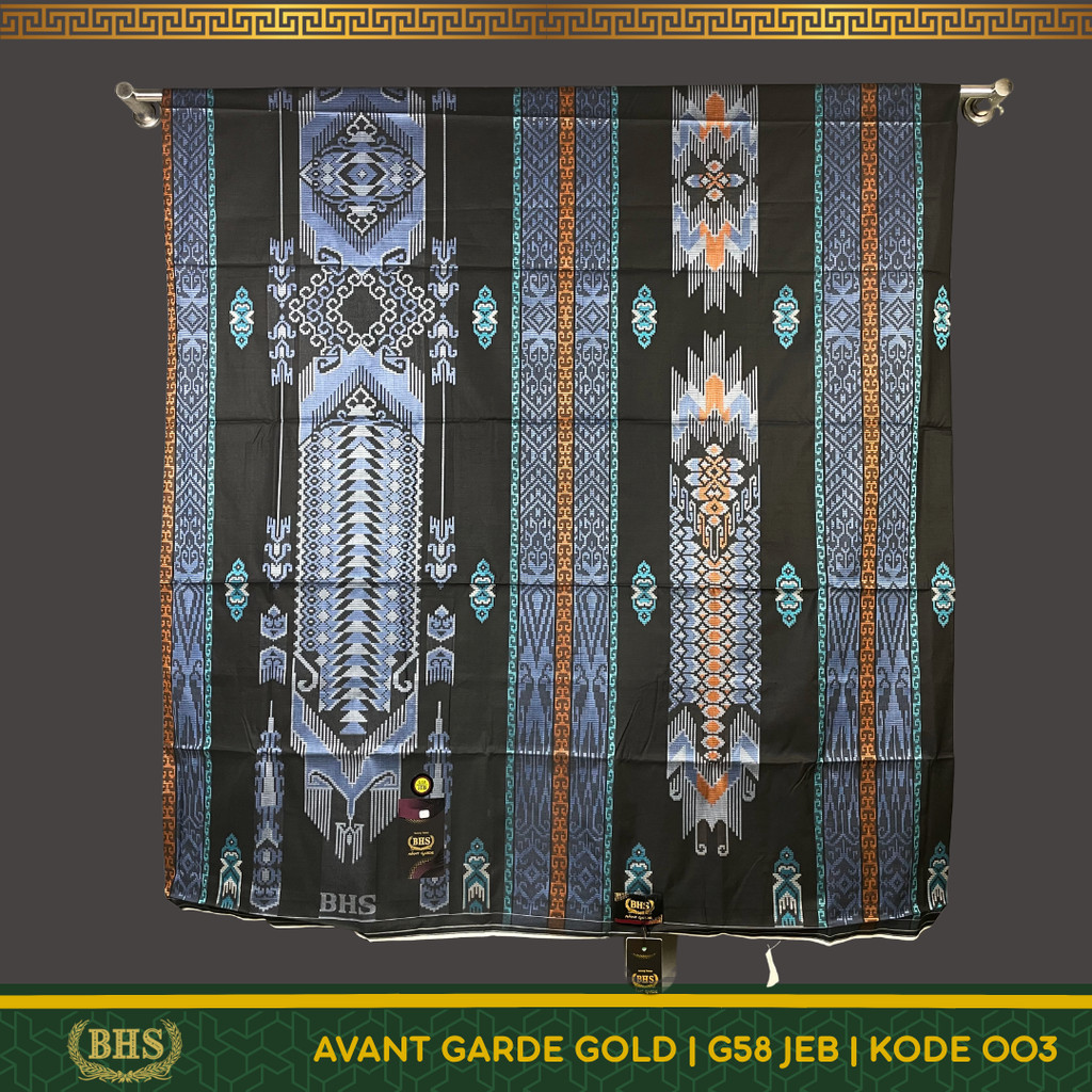 Sarung BHS Gold Avant Garde G58-JEB Koleksi Terbaru Motif Flora dan Geometri Memadukan Tradisi dan Modernitas, Motif Tumpal Vertical, Bahan Mercerized Cotton Halus dan Lembut [Garansi Original]