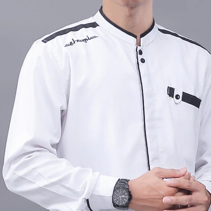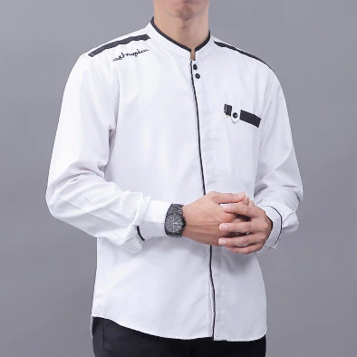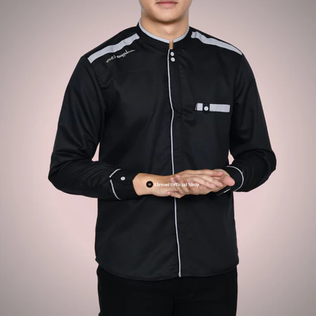 Baju Koko Pria Dewasa Lengan Panjang Motif Polos Kombinasi Elegan Bahan Toyobo