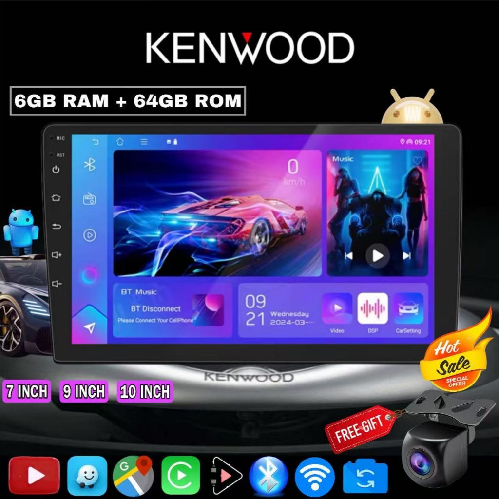 KENWOOD Android Car Player Original 2DIN | Head Unit Layar Sentuh | Bluetooth, Amplifier & Kamera Mundur | GPS, WiFi, Yo