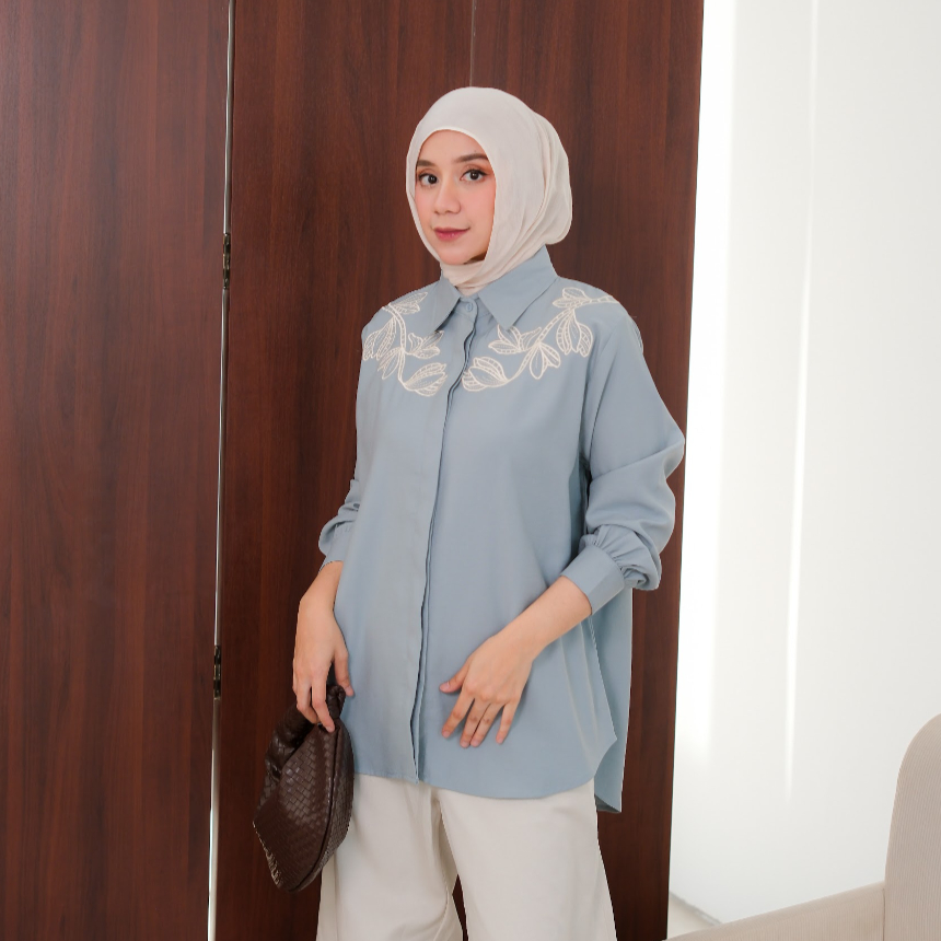 Odeca Klowy Top Kemeja Bordir Atasan Wanita