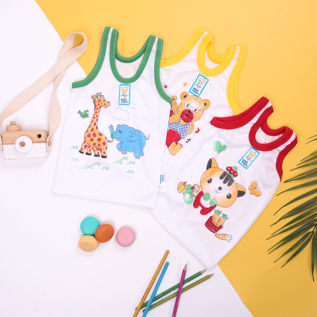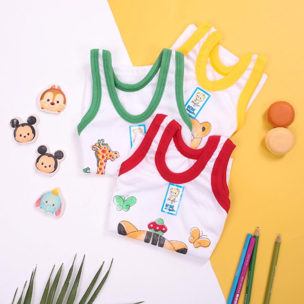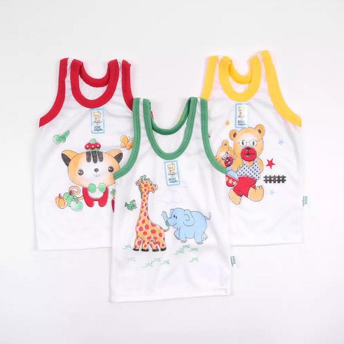 3 Pcs Kaos Dalam BEBE - Singlet Anak Laki Laki / Perempuan - Warna Putih List Warna - Bergambar