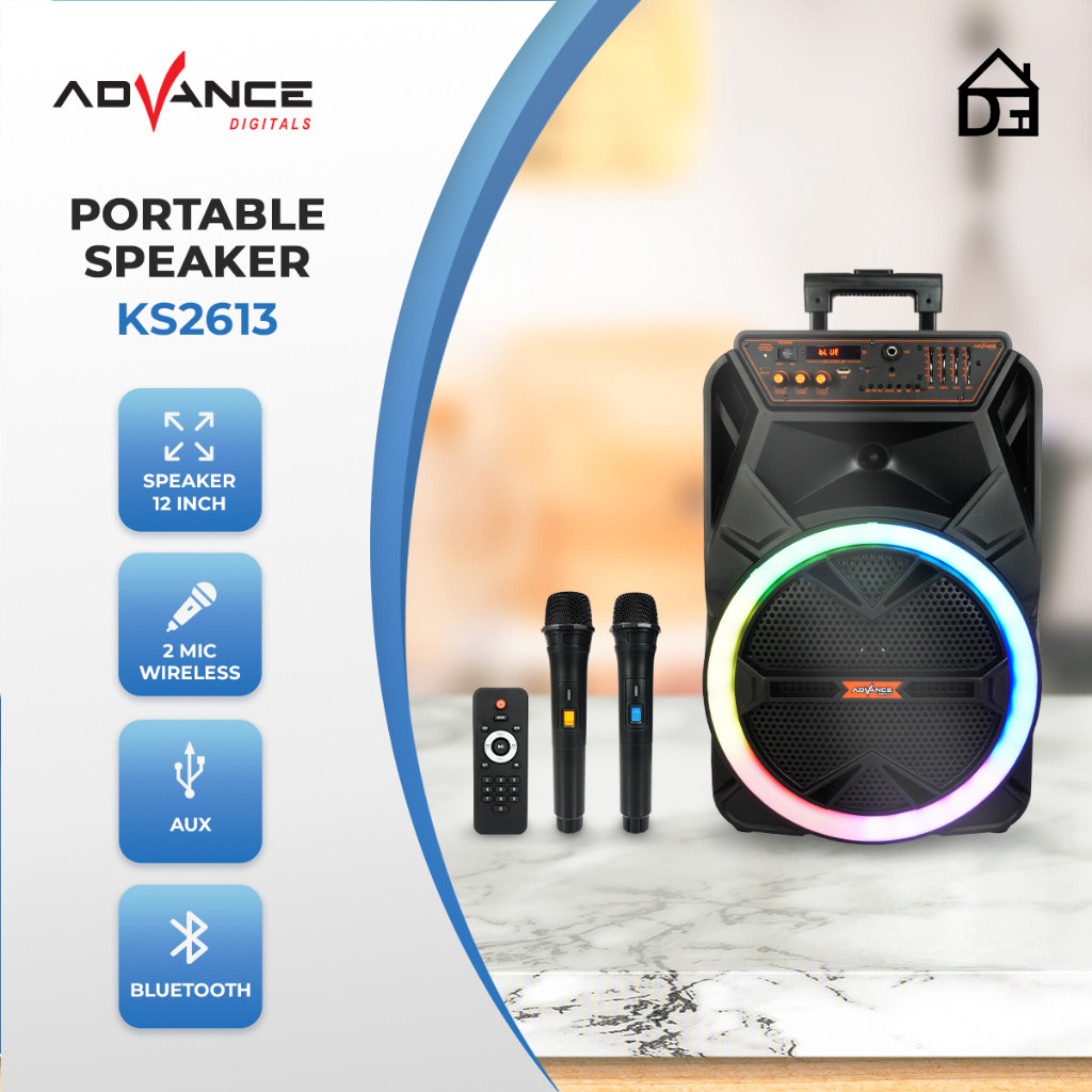 [SPEAKER RAFFI AHMAD] Advance KS-2613 Speaker Bluetooth Portable 12 Inch Free 2 Microphone Wireless