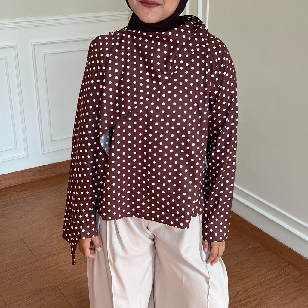 Aimee Top Atasan Wanita Atasan Polkadot Atasan Polos Atasan Aesthetic