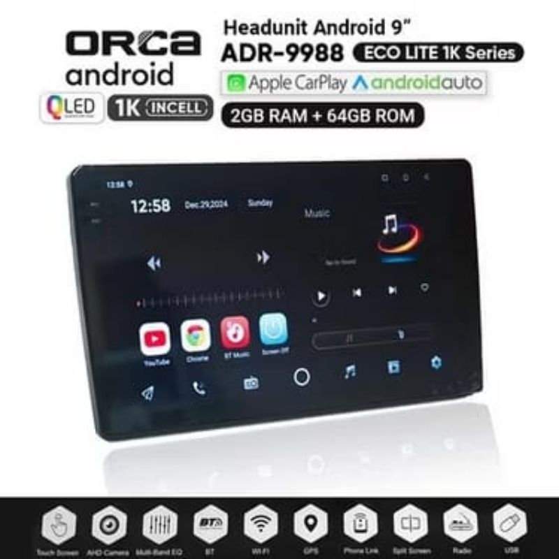 Head Unit Android 9 inch ORCA ADR-9988 ECO LITE SERIES Ram 2GB 64GB QLED 1K INCELL 9inch Mobil ADR9988 ADR 9988 2 GB 64