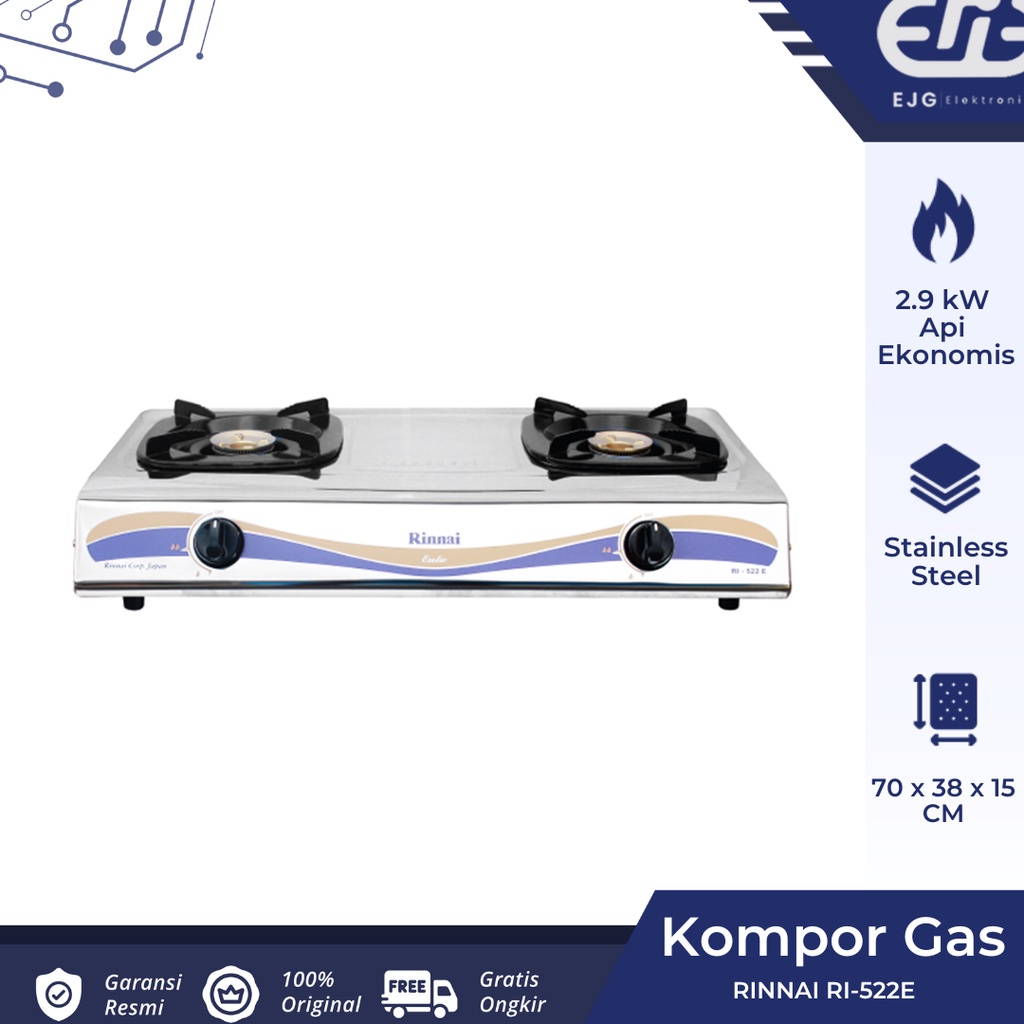 Rinnai Kompor RI-522E Gas LPG 2 Tungku Stainless Steel RI-522 E