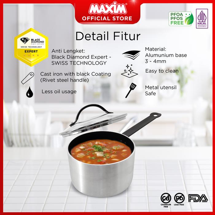 Maxim Pro Panci Teflon Anti Lengket 18cm / 3L Saucepan + Tutup Kaca