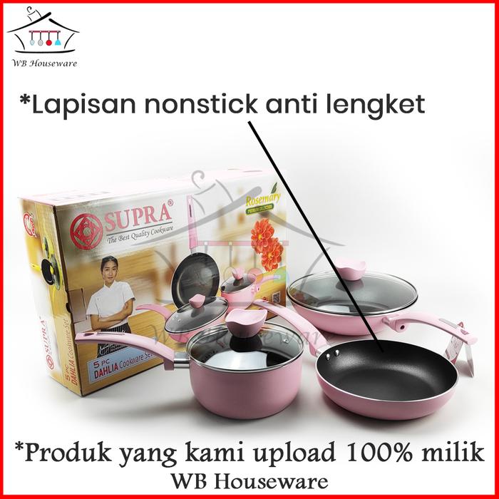 5pcs Cookware Set Supra Pastel Pink Renatta / Dahlia panci set supra / Frypan Teflon