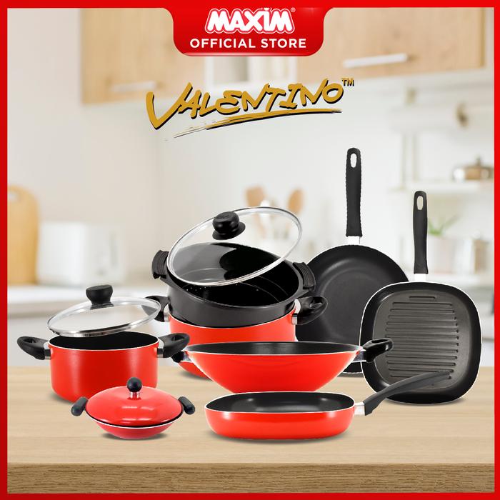 Maxim Valentino Panci Teflon Anti Lengket 16cm 18cm Saucepan + Tutup Kaca