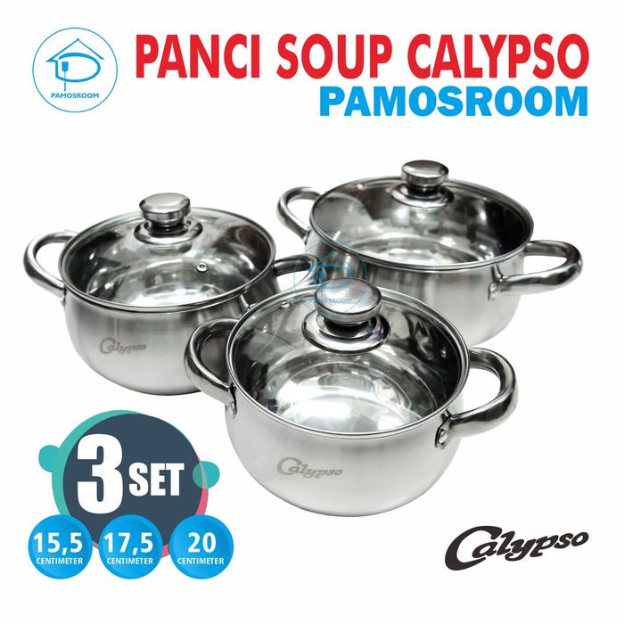 Pamosroom Panci Labu Panci Soup Stainless Tutup Kaca 3set Panci Sup Anti Lengket Panci Foodgrade