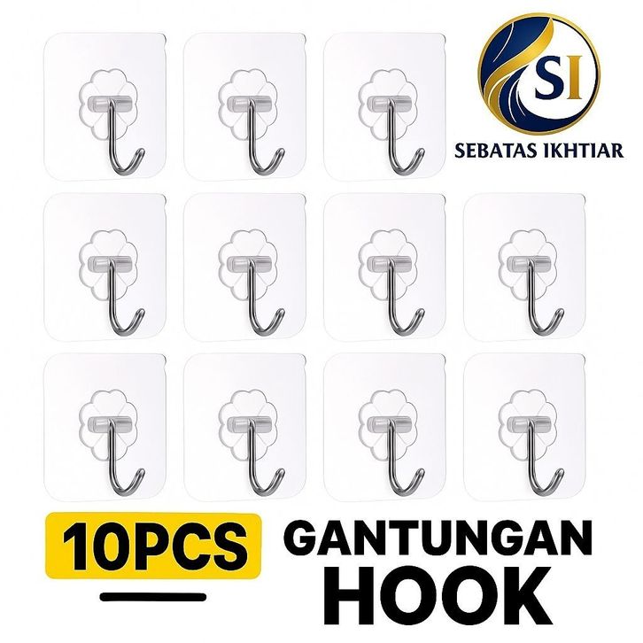 Gantungan Tempel 10 pcs Serbaguna, Kait Tembok, dinding, keramik